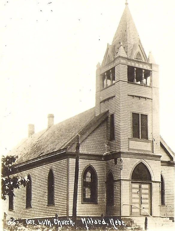 The Union Pacific Railroad began building its main line west from Omaha in 1862. The first 40 miles were completed in 1865 through the village of Millard. As the village grew by offering services and supplies to the rural population, a German Lutheran congregation was founded in 1886 by Wm. Huesemann, pastor of the Missouri Synod church in Papillion (First Lutheran) along with eleven men from the Papillion congregation. The first church building was erected in 1887 which was destroyed by lightning four years later; in 1892 a new sanctuary was completed. The first English worship services were conducted in 1909 but German services were regularly conducted until 1952. As the congregation grew, a new brick structure was erected in 1929. Then the depression came. Both men and women worked to retire the remaining debt from 1940 to 1944; it was retired by using the God’s Acre plan whereby farmers agreed to set aside one acre of crop and give the proceeds to the debt retirement fund. Merchants and patrons living in Millard agreed to contribute a like portion of their earnings.